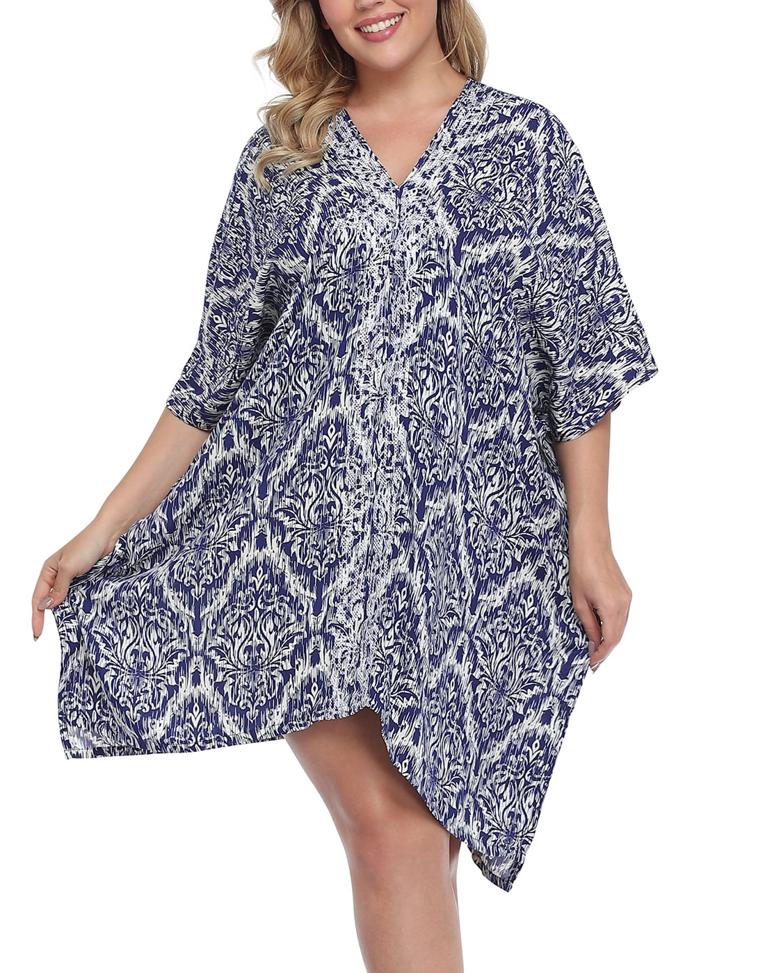Hde Women Upf 30 Kaftan Dress Oversize V Neck Long Plus Size Maxi Swim Cover Up Walmart Com